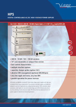 | HPS 1.5kW - 10kW | 1 | 800V - 100kV | 3 x 10 -3 x 额定电压- 9 x 10 -3 x额定电压 | USB、RS232、CAN、IEEE488、以太网、AIO、SPS | 2HC、ACL、ARC、CLD、自定义、EOA、FCS、FP、VLN、WR4 |